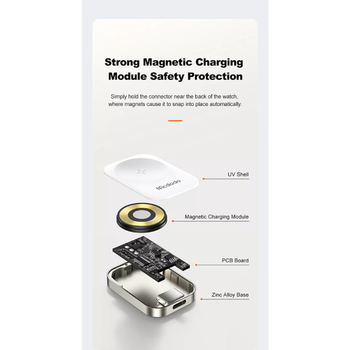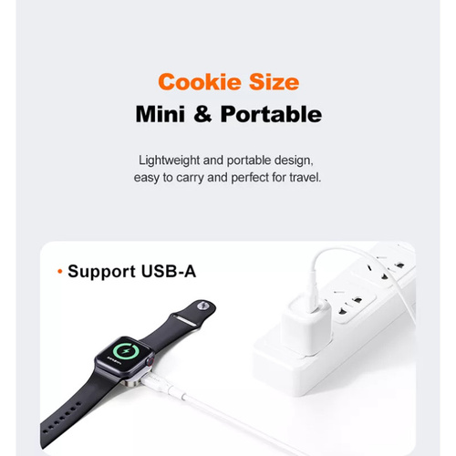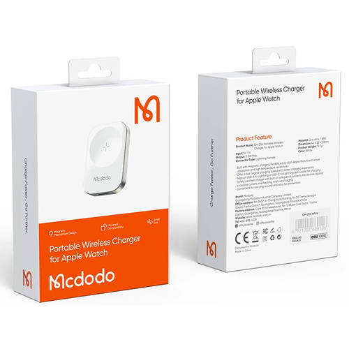 طراحی مینی و پرتابل جهت حمل آسان شارژر ساعتهای هوشمند اپل واچ به هر مکانی که بخواهید. بسیار کوچک و قابل حمل، ابعاد 40x28x5.8 میلیمتر، 19.7 گرم وزن، قرارگیری خیلی راحت در داخل جیب، دارای پورت مادگی Lightning جهت تامین انرژی مورد نیاز شارژر با وصل کردن کابل لایتنینگ به آن (ورودی: 5V/1A)، شارژ ایمن جهت محافظت از باتری دستگاهها در برابر جریان بیش از حد، اتصال کوتاه، گرمای بیش از حد و شارژ بیش از حد، کیفیت ساخت عالی، ساخته شده از جنس آلیاژ روی و ABS، بسیار محکم و مقاوم در برابر سایش، خوردگی و غیره، مجهز به پد وایرلس مغناطیسی قدرتمند با جذب فوق العاده بالا به زیر ساعت اپل، حداکثر توان خروجی 3.5 وات، خاصیت مغناطیسی به قدری قوی است که به راحتی ساعت از شارژر نمیشود. از دیگر ویژگی خاصی که این شارژر اپل واچ دارد، در هنگام استفاده فقط با یک کابل لایتنینگ به آن متصل میشود و به آسانی اپل واچ خود را شارژ نمایید.